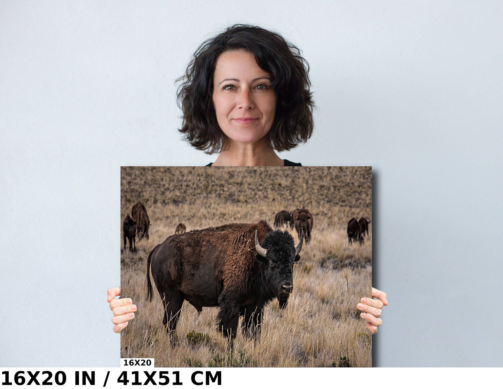 Bison Happy Hour: American Buffalo Herd Wall Art Bison Photography Metal Canvas Print Utah Wildlife