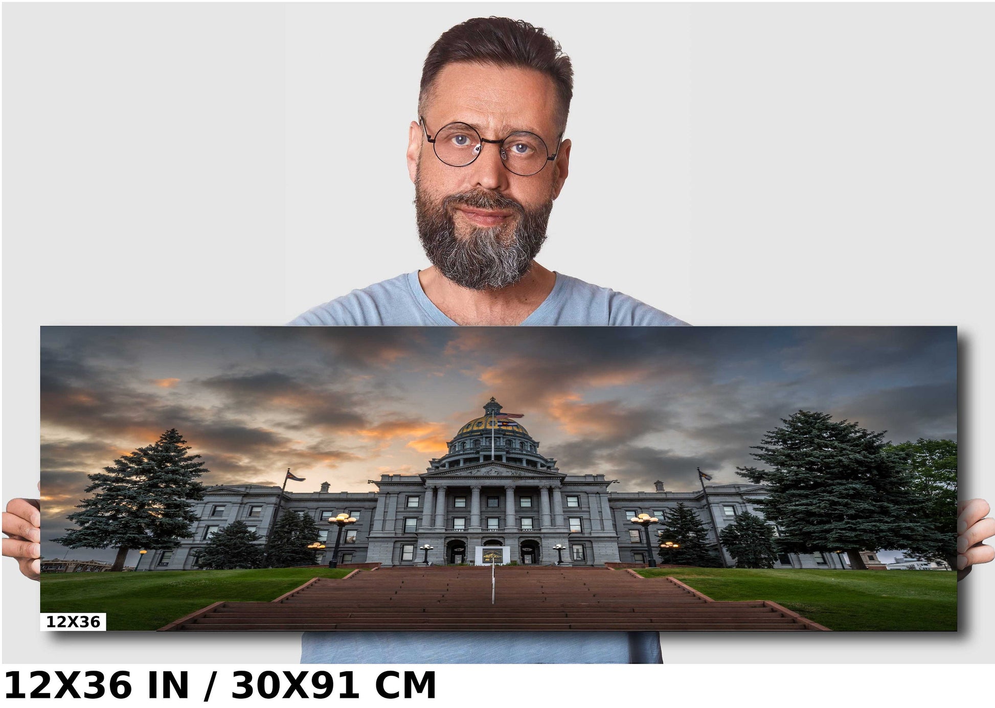 Colorado Capitol Clouds: Denver Colorado State Capitol in a Gloomy Light Architecture Wall Art Metal Canvas Print