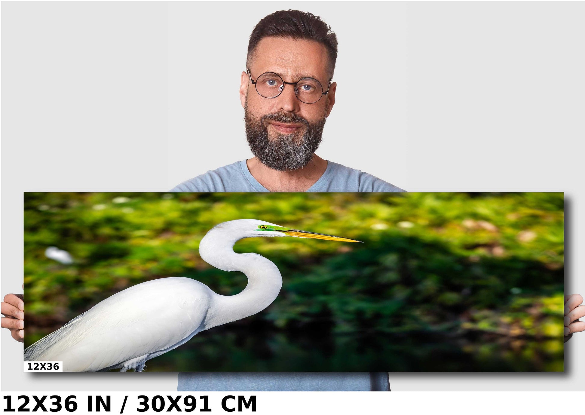 Egret Elegance: Side View of the Majestic White Great Egret Bird Photography Wall Art Metal Canvas Print