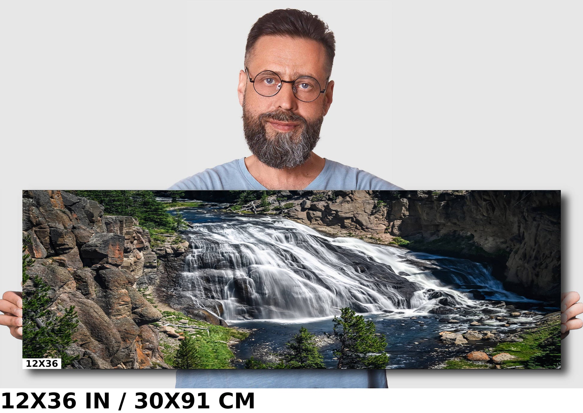 Falls Elegance: Gibbon Falls in Yellowstone Metal Canvas Print National Park Wall Art Wyoming Landscape