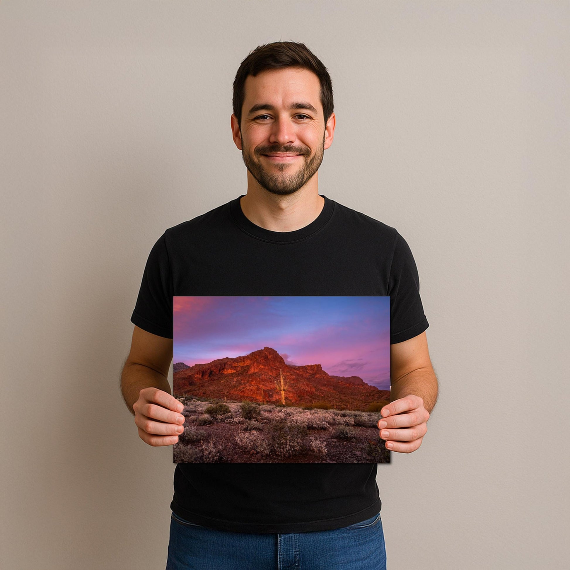 Displayed in a home or workspace, this photograph fills the room with warmth and serenity. It reflects the timeless beauty of Arizona’s desert mountains — a landscape that feels both ancient and alive, reminding us to slow down and notice the quiet brilliance that each sunset leaves behind.