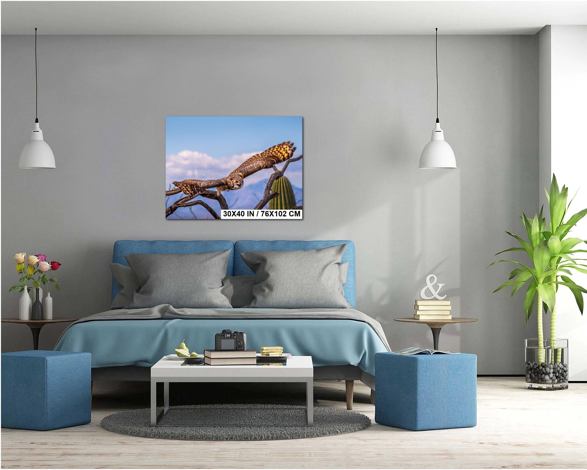 Great Horned Owl Arizona Desert Landscape Saguaro Cactus Wildlife Bird Photography Print Canvas Metal Acrylic Wall Art