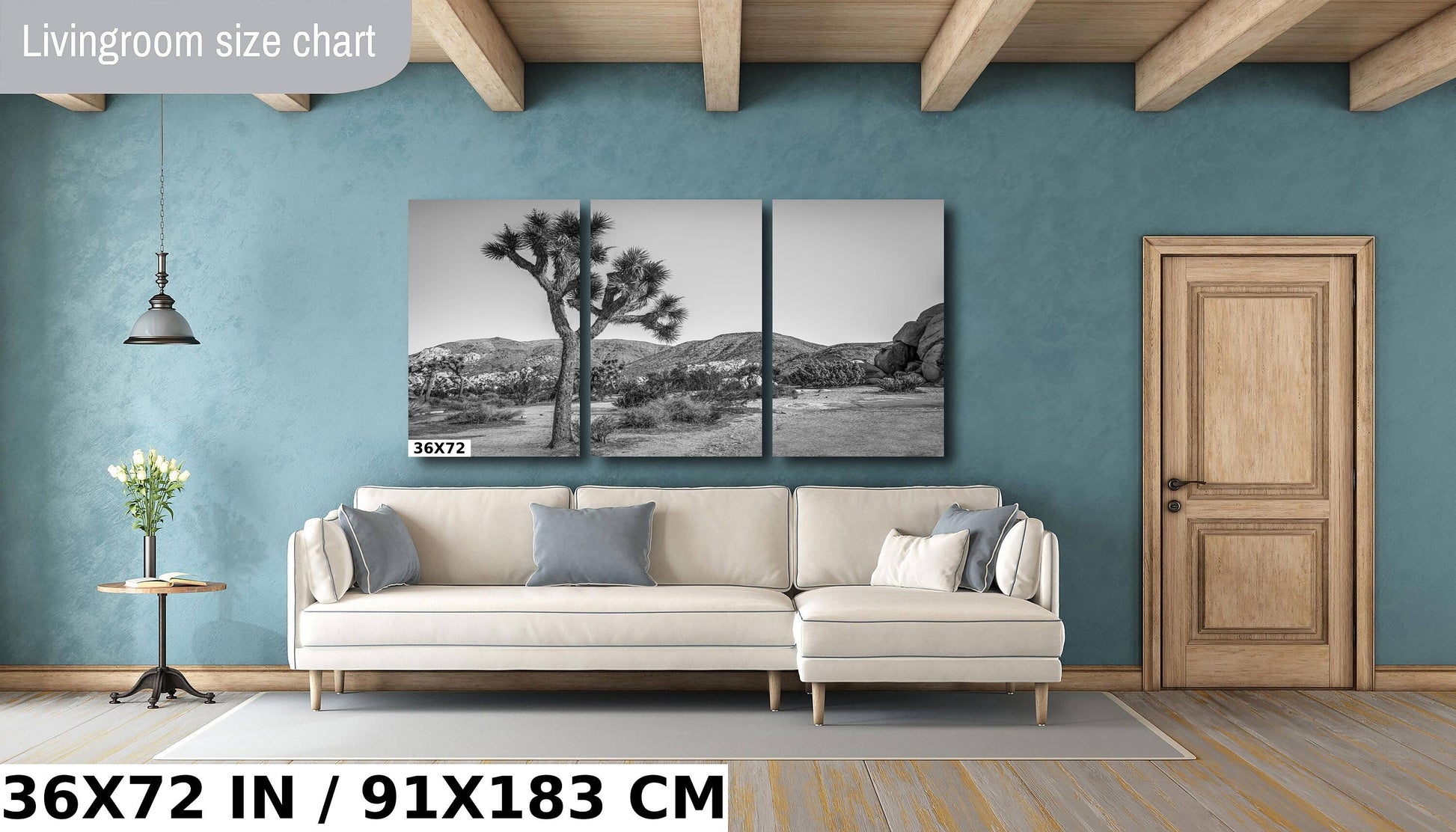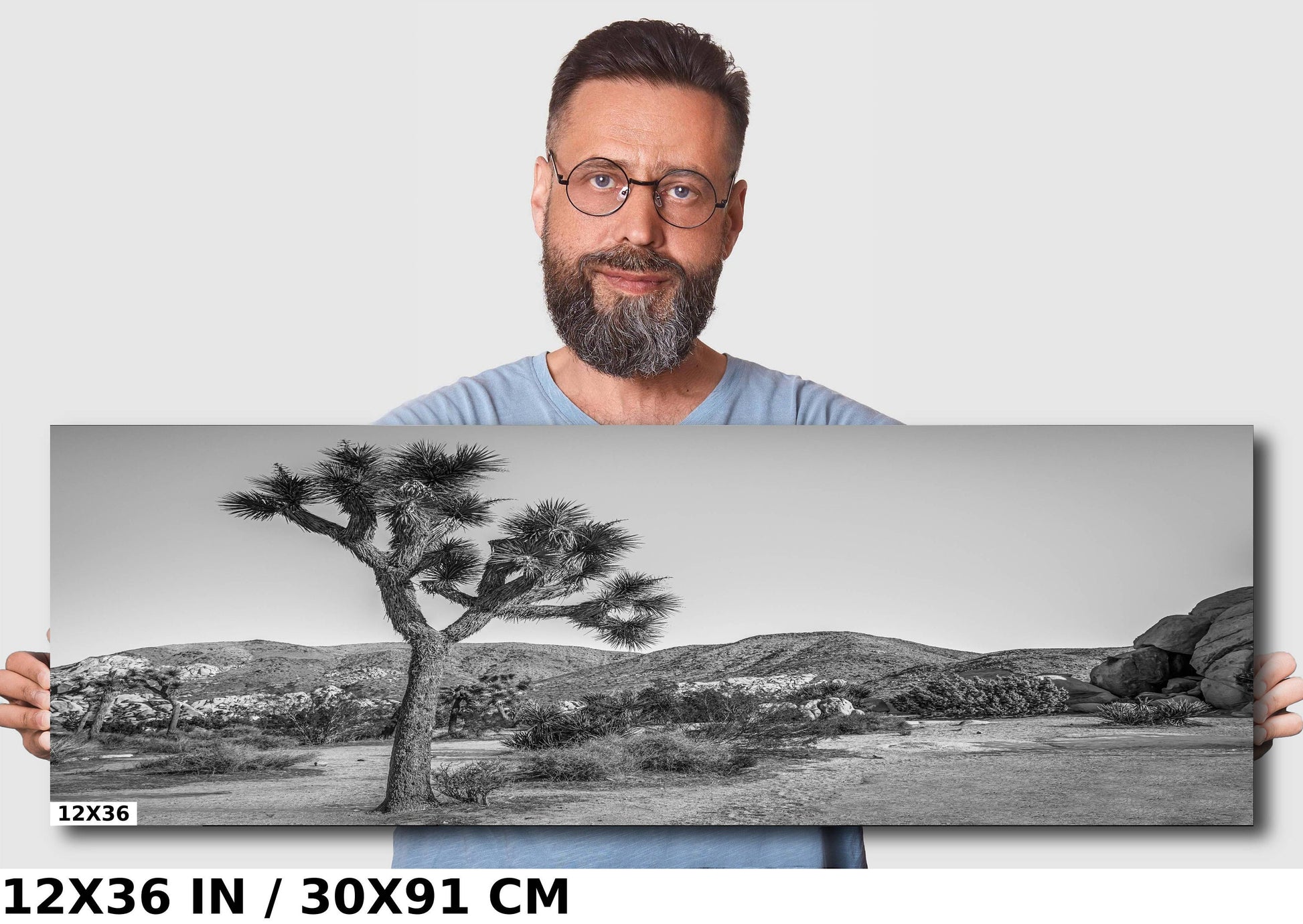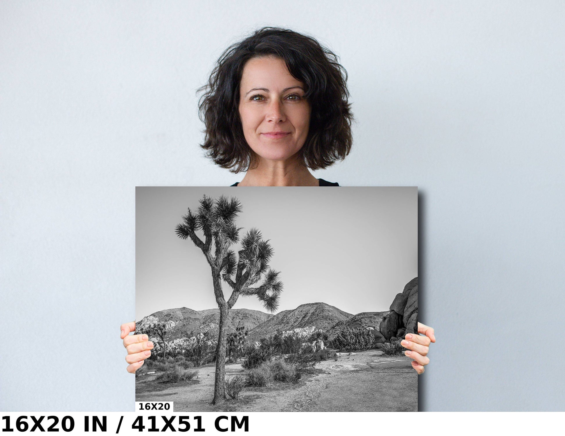 Joshua Tree Wall Art - California Desert Landscape Canvas | Black and White Desert Photography