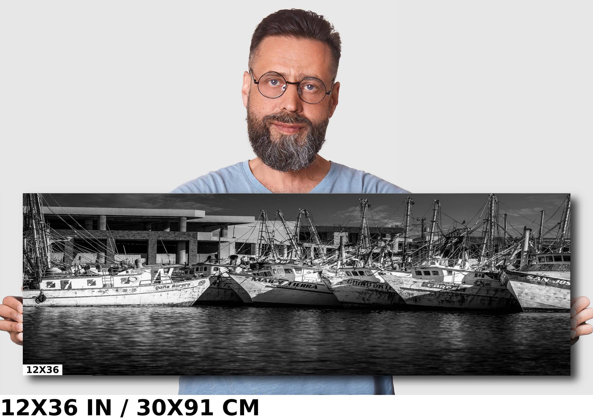 In this monochromatic snapshot of life, the fishing vessels stand like guardians of the sea. Their names dance across their bows, a testament to their adventures and the bounty they've pulled from the depths. Look closely, and you’ll find weathered surfaces and textures, each a storied canvas painted by the brush of the sea, reflecting years of service to the mariners that call them home.