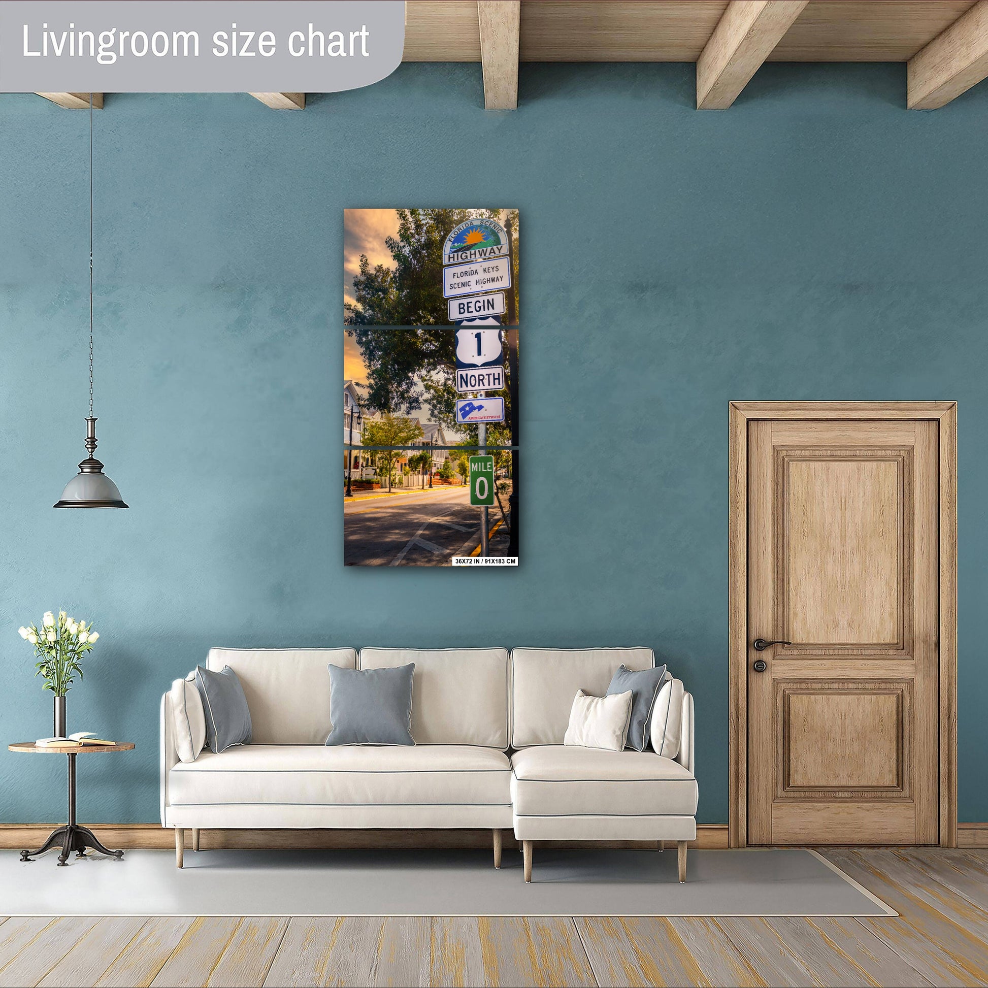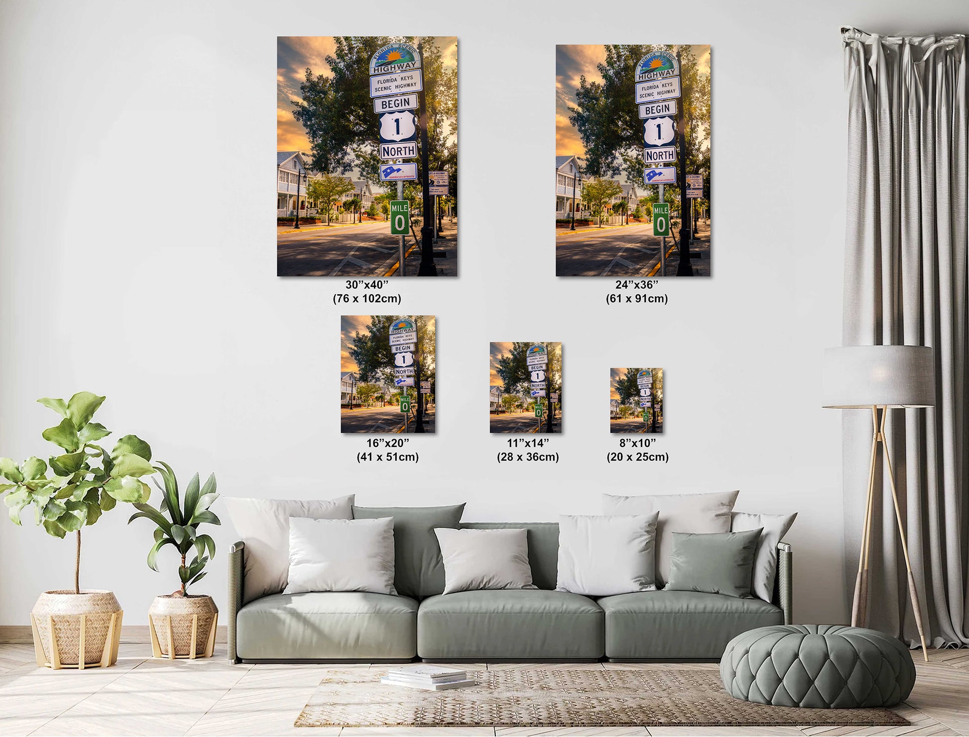 Key West Highway 1 Sign: Florida Keys Scenic Highway Mile 0 Zero America's Byways Print Wall Art Photography Aluminum/Acrylic/Metal/Canvas