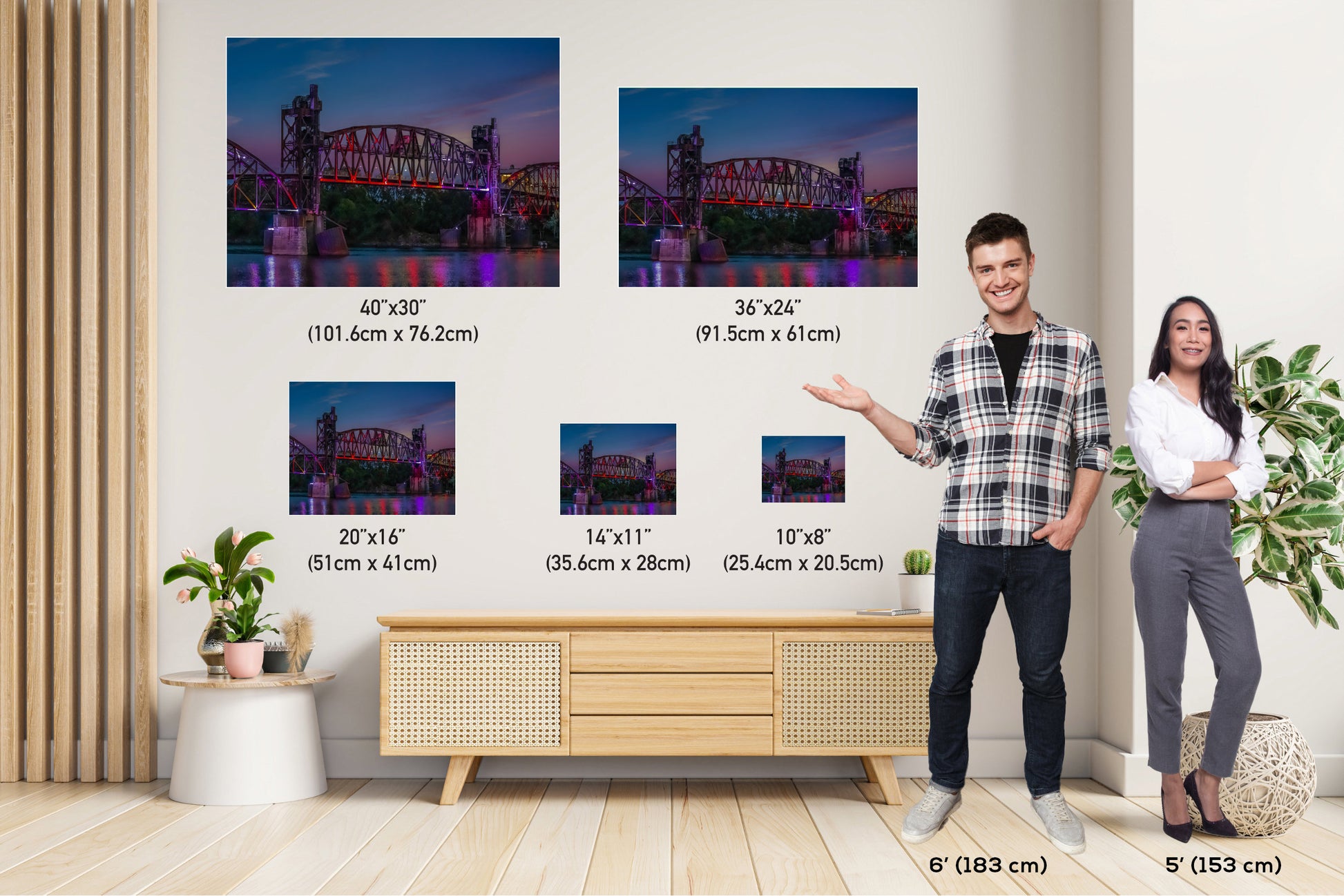 We currently offer modern black frames only for canvas prints. Traditional photo prints, metal, and acrylic options are sold unframed, giving you the freedom to choose a style that best matches your space.