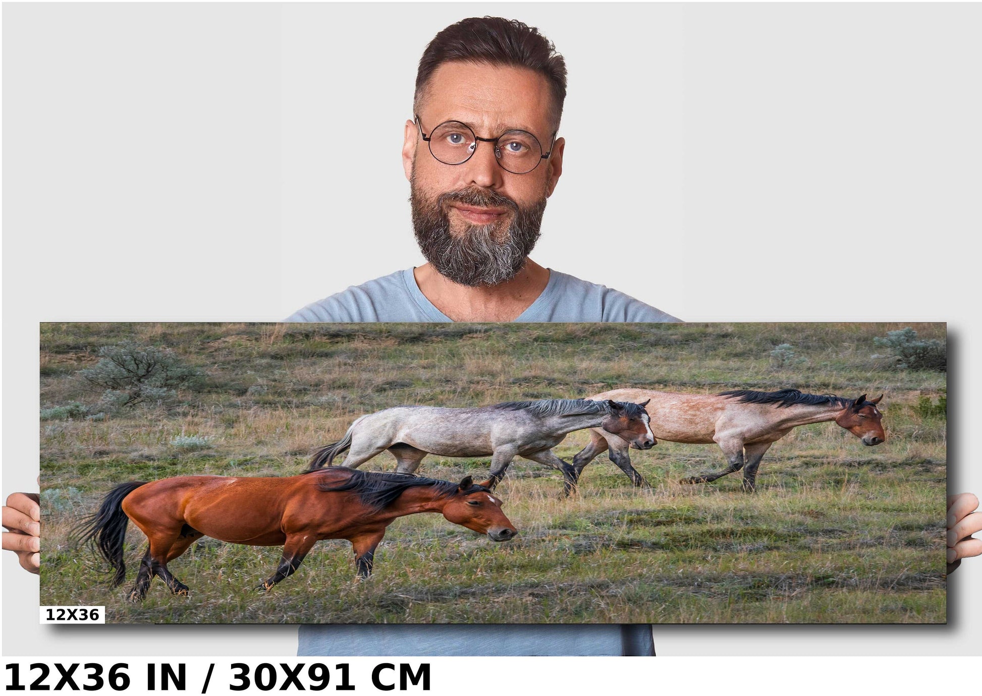 Prairie Trio: Horses in Perfect Step at Theodore Roosevelt Park National Park Metal Acrylic Print North Dakota Wall Art
