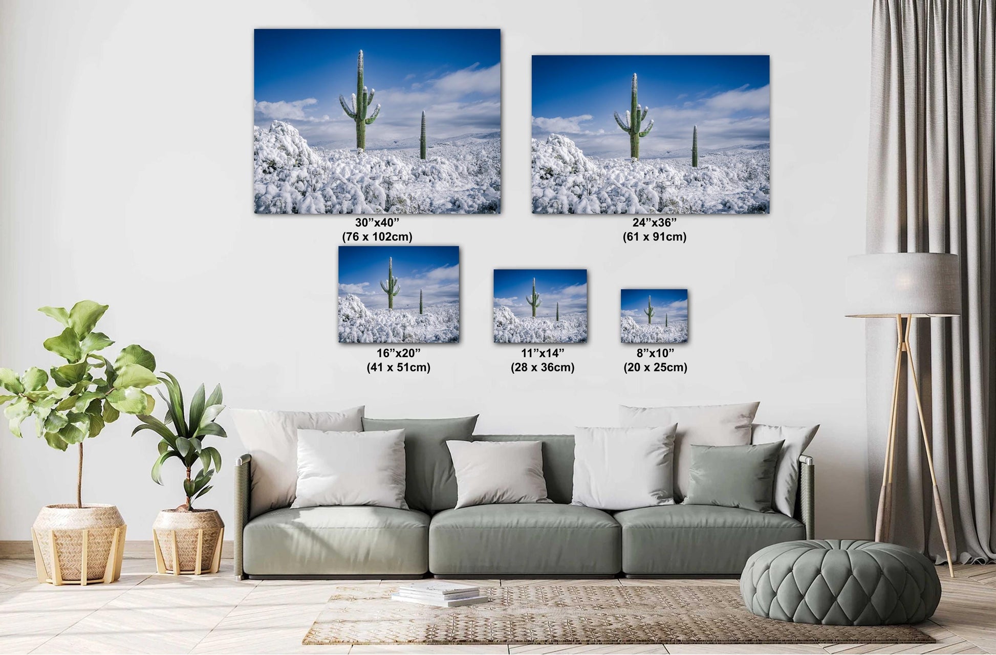Saguaro Cactus Wall Art – Snowy Desert Scene | Southwest Art Print Decor